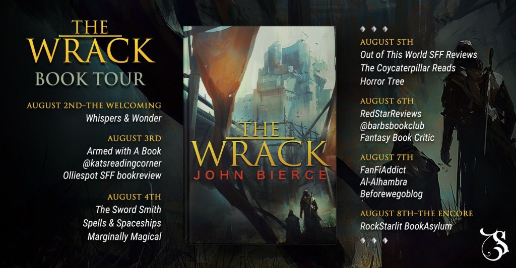 Let me just start out by saying you should read The Wrack by John Bierce! This book is such a unique Fantasy! I’m really happy I had the opportunity to join in on this blog tour featuring this book and thankful to Storytellers On Tour for allowing me to participate! Please click that link to view the tour schedule so that you can see all the great reviews by other reader/reviewers who also took part. Ok ok I know you’re interested in what this book is all about so without further ado I present to you the book blurb: